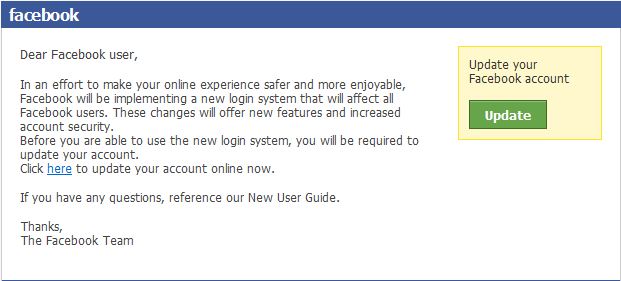 As I was checking my email, there were a couple in the junk folder and one was supposedly from Facebook claiming that there is a ‘New login system’, people must be really stupid to fall for such a phishing scam.